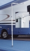 The awning support cradles the roller during travel. The rafter removes the bow in the roller when the awning is rolled out, and the ground support prevents the roller from sagging toward the ground. Note: Rafters do not safeguard awnings from water pooling. Use rain release setting to provide for water run off.